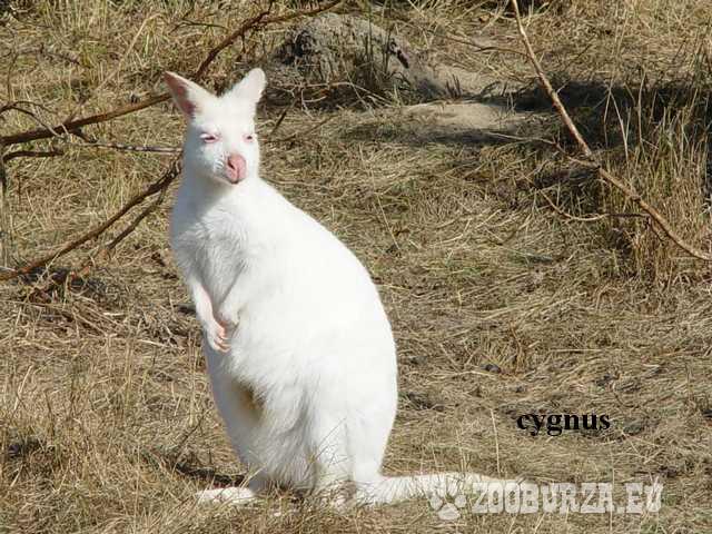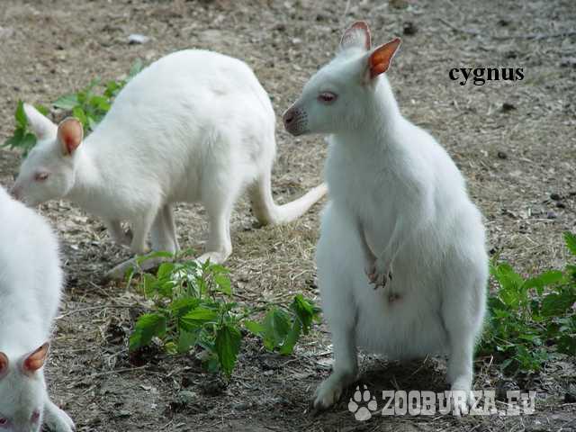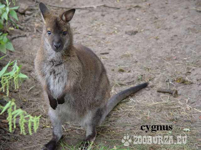 Opis: Kangury Walabia Bennetta – ssak średniego rozmiaru, żyjący samotnie lub tworzący stada. Samce mogą osiągać ponad 20 kg wagi i długość ciała 90 cm. Młode wielkości orzecha wędruje po porodzie do torby lęgowej matki, gdzie rozwija się jeszcze przez osiem miesięcy. Walabie Bennetta występują na terenach przybrzeżnych wschodniej Australii i Tasmanii. Są aktywne nocą, nad ranem lub późnym popołudniem. Żywią się głównie liśćmi i trawą. Dieta żywieniowa nie różni się znacząco, którą stosujemy w hodowli królika. Występują w kolorach szaro-brązowych i rzadziej spotykane białe - albinosy. Kangury są dość odporne na nasze warunki klimatyczne. W swojej hodowli posiadam kilkadziesiąt. www.cygnus.info.pl
