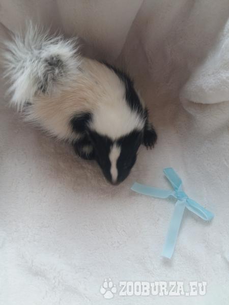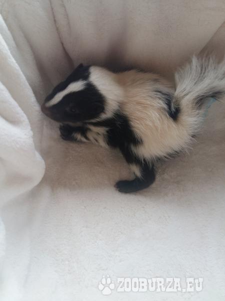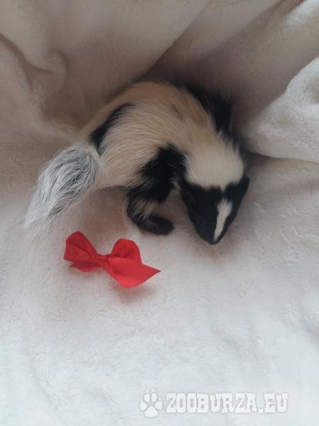 Opis: Witam serdecznie ! Miło mi poinformować, że przyjmuje już rezerwacje na tegoroczne skunksiki w różnych odmianach barwnych. Skunksy sa ciekawskimi, spokojnymi i czystymi zwierzetami, szybko adoptuja sie do nowego miejsca i korzystania z kuwety. .Ich dieta jest bardzo różnorodna, baze stanowi sucha karma dla psów ras małych ( u nas żywią się Royal Canin ) dodatkowo powinny codziennie dostawac warzywa i owoce. Po zaszczepieniu można wychodzić również na spacery. Każdy skunksik opuszczajacy hodowle jest przyzwyczajony do człowieka , wstepnie zsocjalizowany, odrobaczony oraz po przegladzie